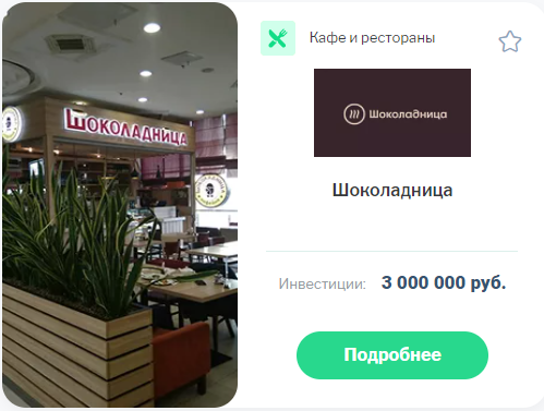 Франшиза сети ресторанов быстрого питания «Крошка картошка» Франчайзинг сети «Крошка Картошка» — это быстрый, рентабельный и проверенный опытом путь начала собственного ресторана быстрого питания. Франчайзи получает надежный и опробованный на….